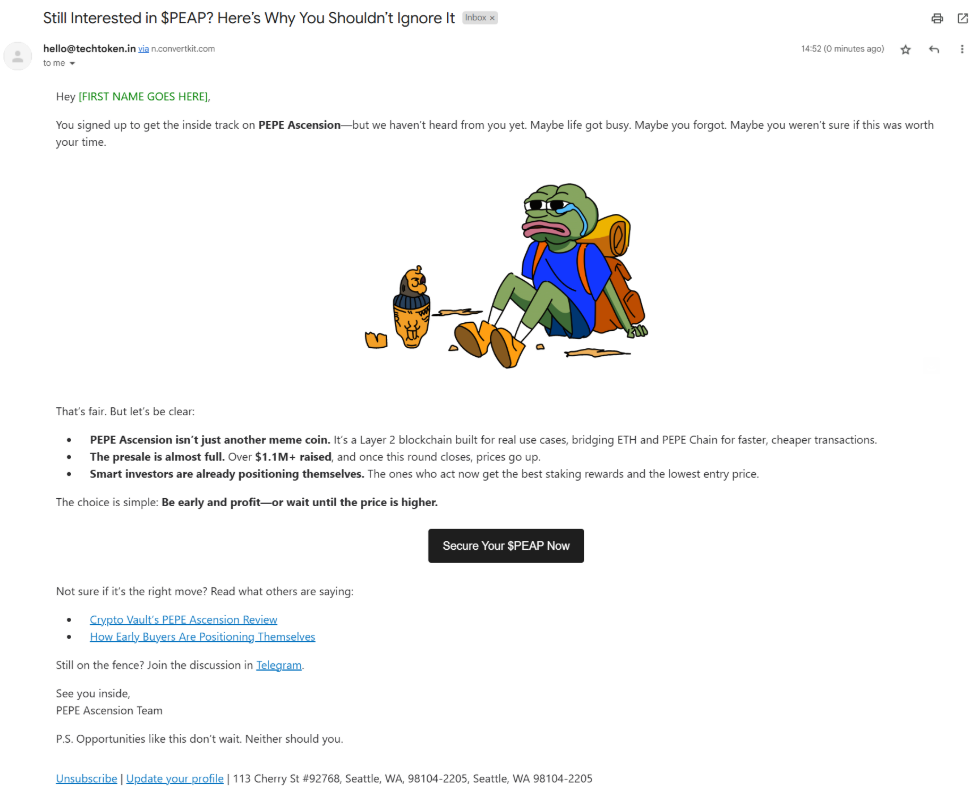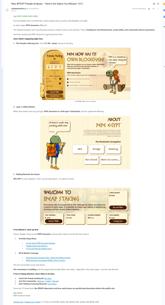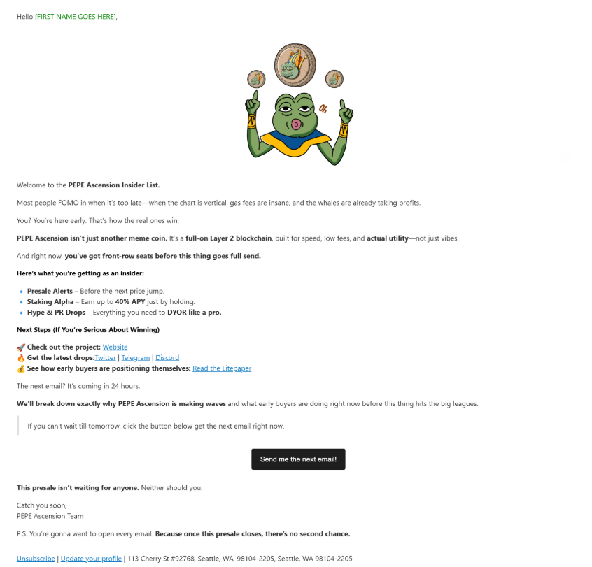 “Join the PEPE Ascension Insider List and get early access, staking rewards, and exclusive presale alerts.”